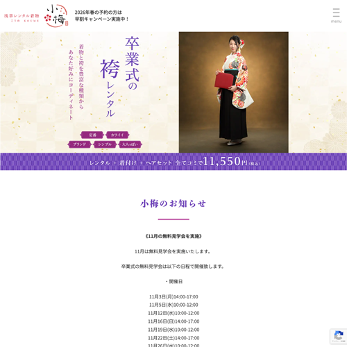 専門店ならではの華やかな二尺袖や豪華な袴が魅力!単色からガーリーコーデまで豊富に用意